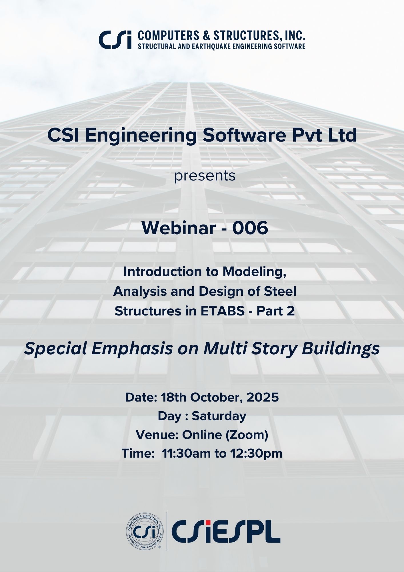 This session is aimed at enhancing your understanding of the integration of IS 1893 standards in structural modeling, particularly focusing on torsional effects. In this insightful session, we will discuss Techniques for accurately modeling for torsion in ETABS, Addressing and analyzing torsional modes post-analysis and Practical tips ensuring compliance with IS standards while tackling torsional effects